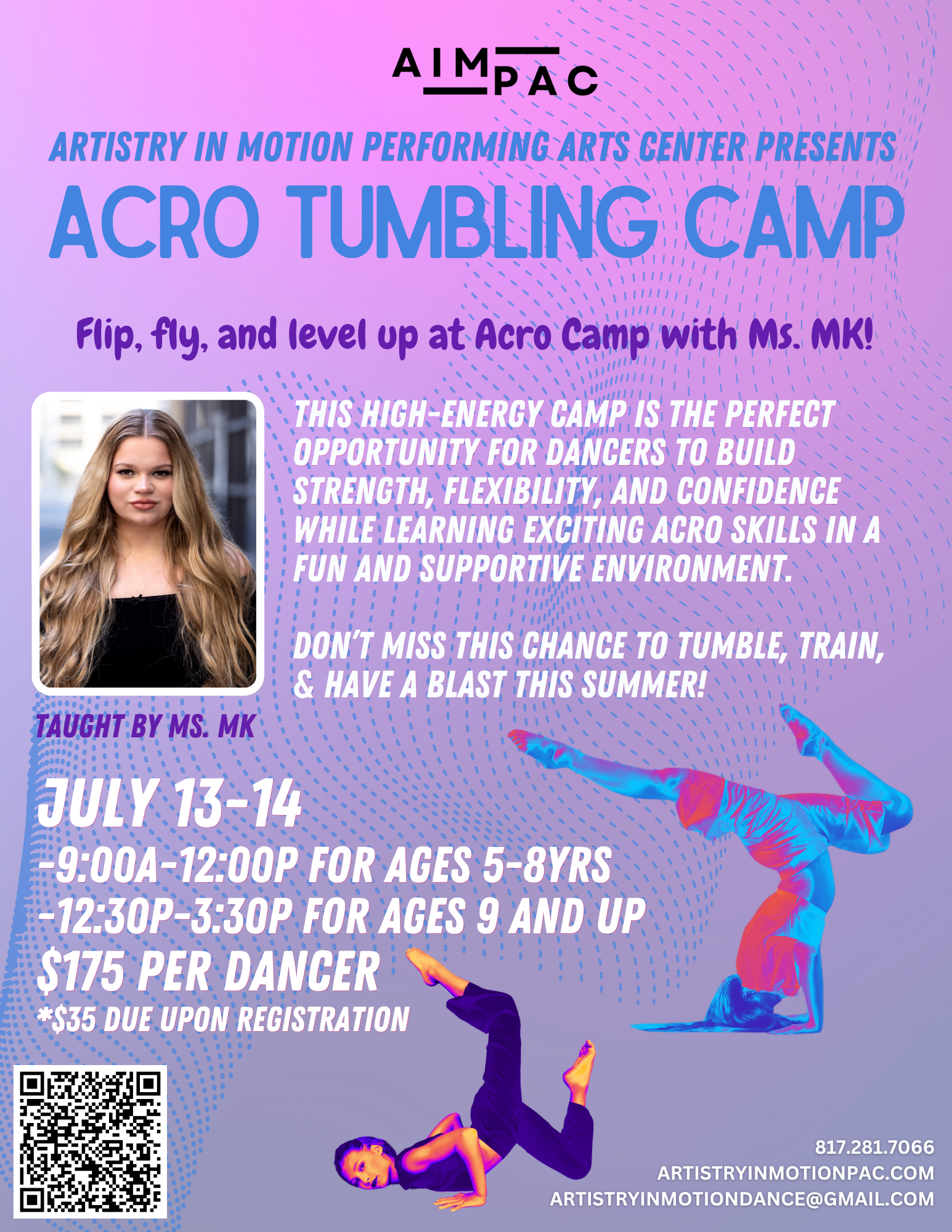 Welcome to Artistry in Motion Performing Arts Center. If you love to dance or are looking for dance camps or a dance school in or around North Richland Hills, TX, then stop looking and bring your dance shoes and passion for dance to AIMPAC today. From dance summer camps to lessons for children of all ages and skill levels, at Artistry in Motion Performing Arts Center, we are all about the art, joy, and love of dance.